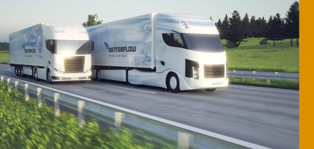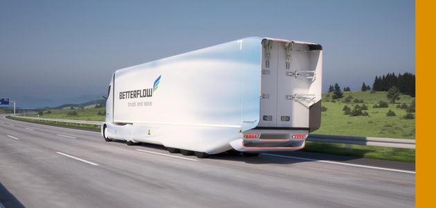 Für die Firma Betterflow GmbH – ein junges Unternehmen aus Aachen entwickelt aerodynamische Lösungen für LKW-Trailer, um den CW-Wert zu reduzieren und so den Kraftstoffverbrauch deutlich zu senken. Dazu war es nötig, drei Trucks zu entwickeln und zu gestalten - einen neutralen aktuellen, einen der nahen Zukunft 2025 und einen Future-Truck für das Jahr 2032. Für diverse Präsentationsformen wurden diese Trucks so in Szene gesetzt. Um die Funktionen und Visionen in der Aerodynamik bei LKWs zeigen zu können, entwickelten wir dazu eine komplette 25 km lange Autobahnstrecke mit reichlich Landschaft als virtuelles 3D-Modell. So ließen sich alle Konfigurationen und Fahrsituationen aus allen Kameraperspektiven darstellen.