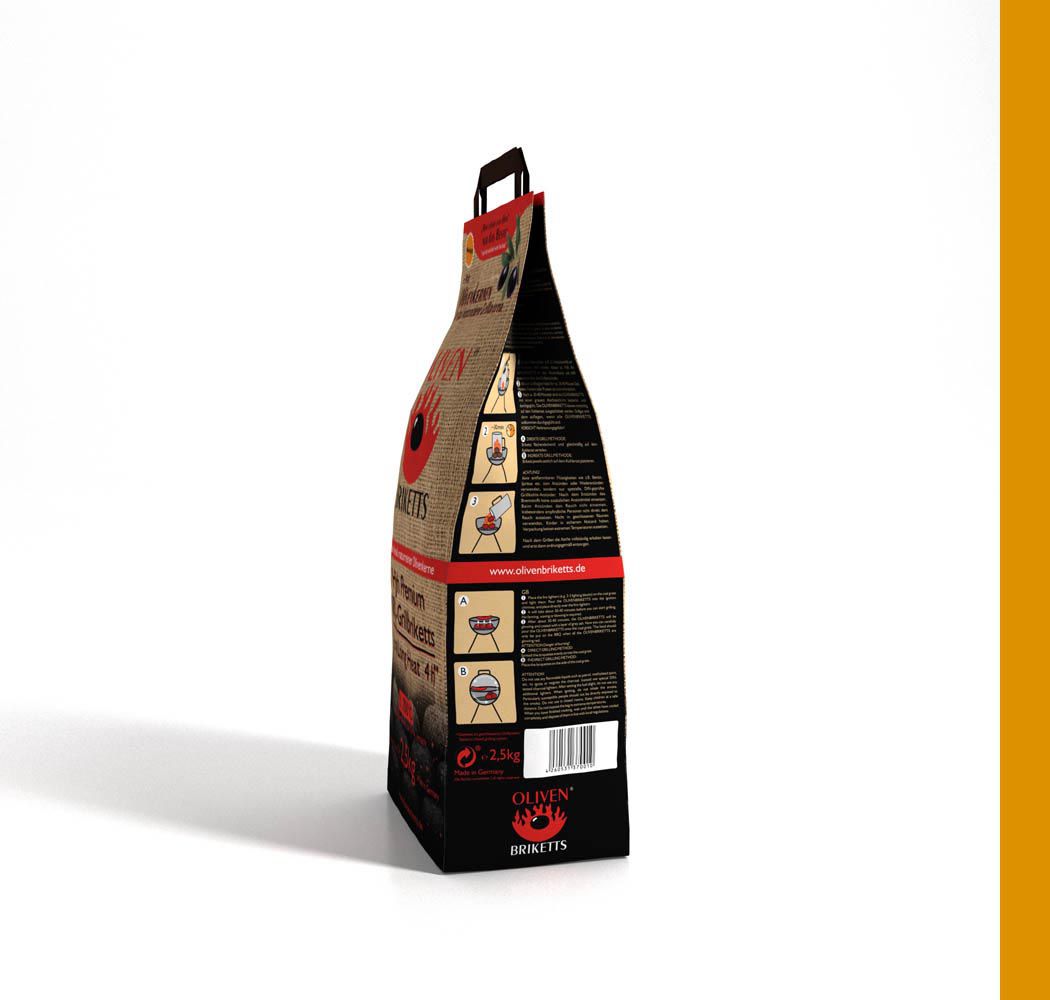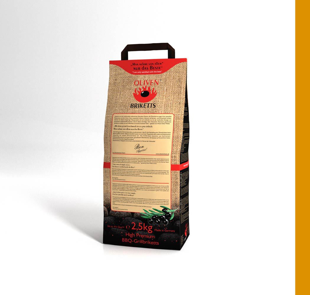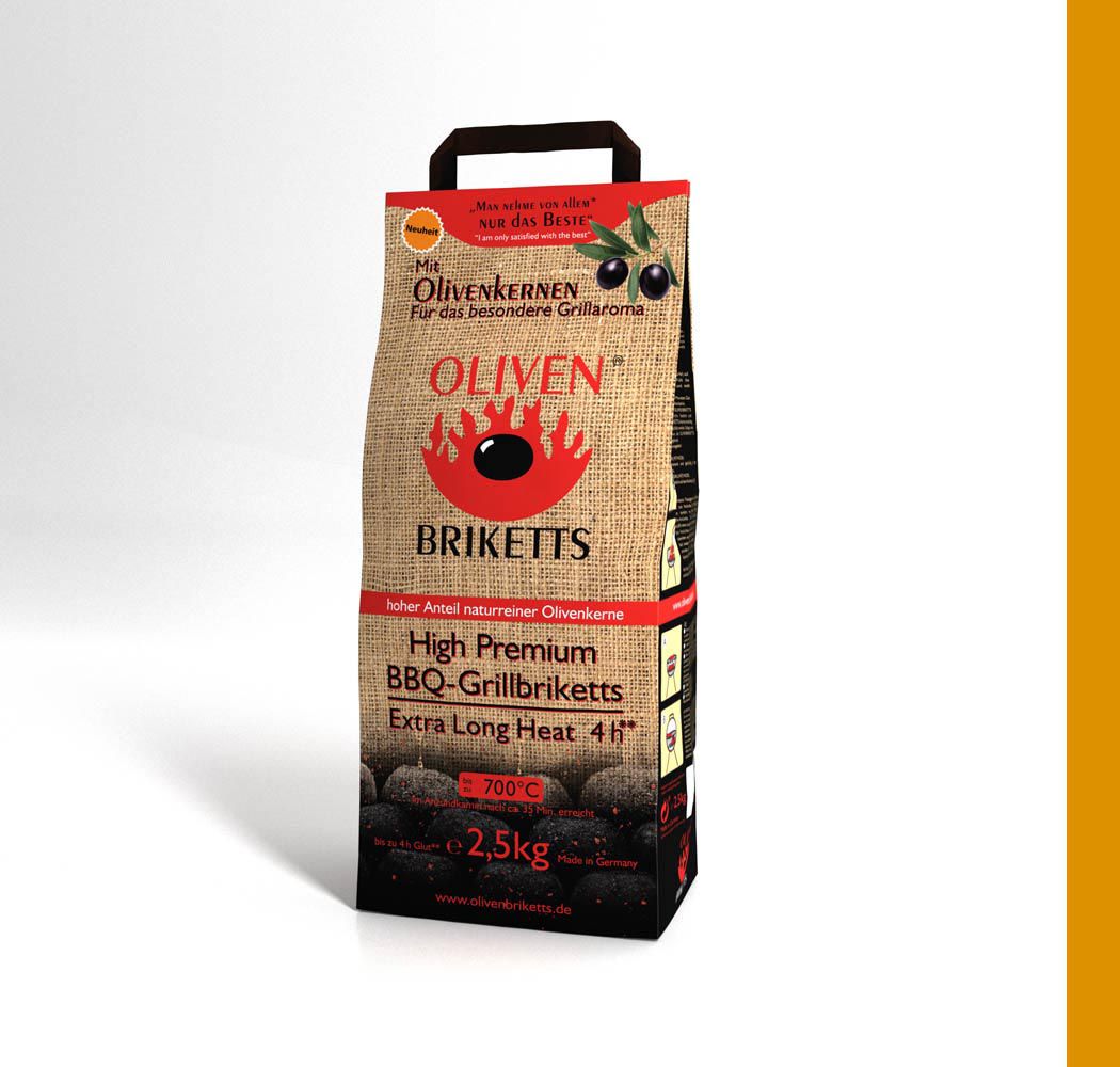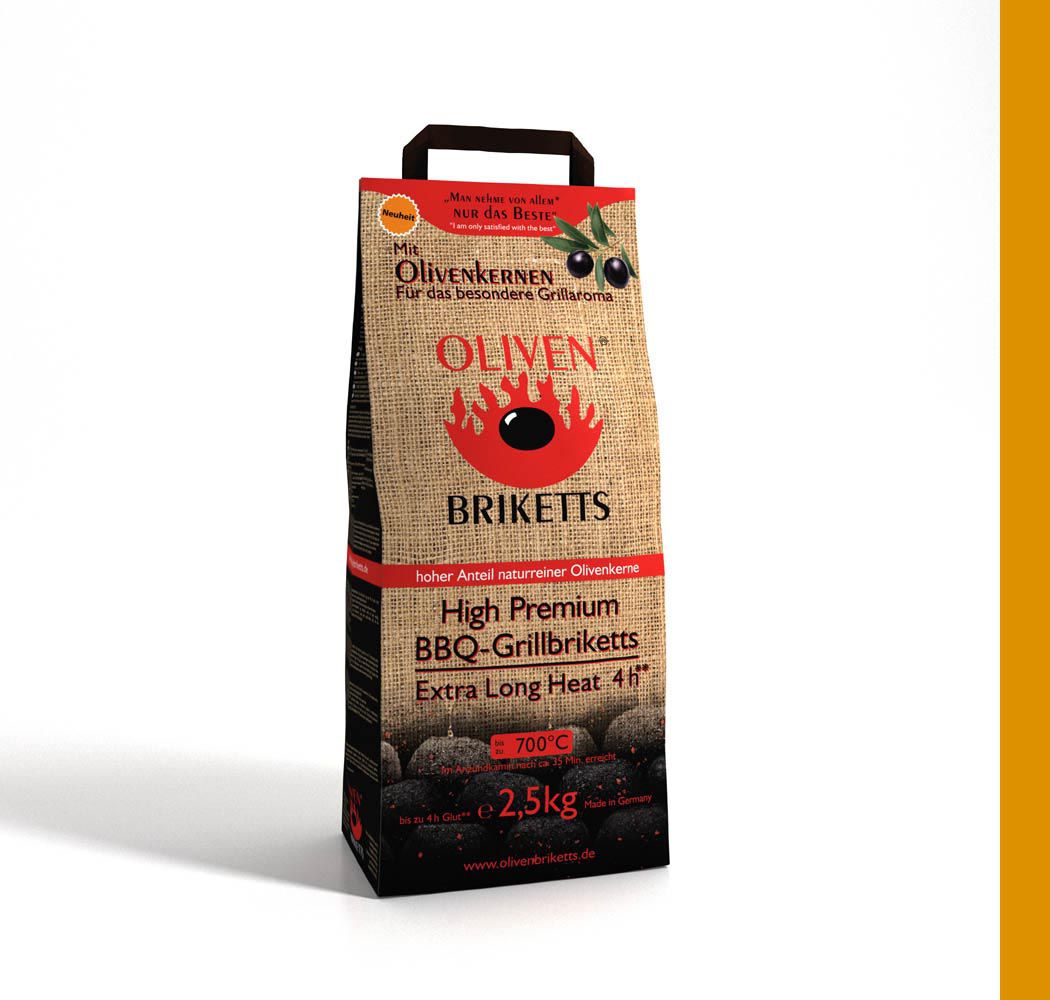 Für die Gefa GmbH entwickelten wir diverse Verpackungen für ein neuartiges Grillbrikett, das Olivenbrikett. Neben dem Verpackungsdesign und diversen Displays waren wir außerdem mit der Entwicklung eines passendem Logos betraut worden, dass der Marke und den Verpackungen einen hohen Wiedererkennungswert geben soll. Die Briketts haben durch den hohen OlivenkernGranulatanteil einen sehr hohen Brennwert und geben dabei ihr angenehmes Aroma frei.
