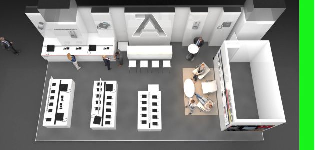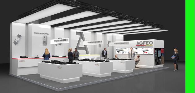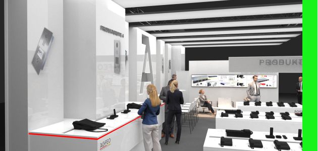 Für Agfeo entwarfen wir diesen Messestand. Wichtig war der cleane weiße Auftritt der Firma nach dem Relauch ihrer CI.